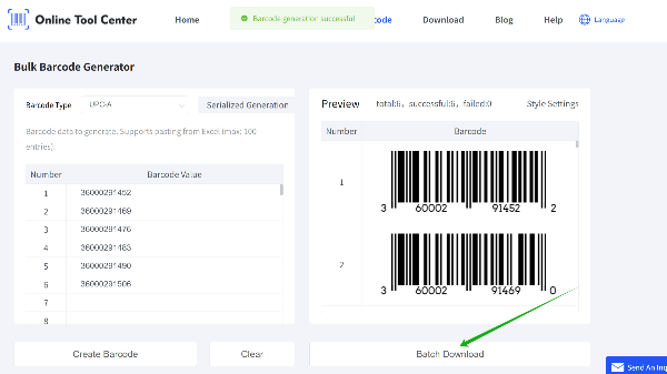 สร้างบาร์โค้ดในไม่กี่วินาทีด้วยเครื่องกำเนิดบาร์โค้ดจำนวนมากฟรีของเรา สร้างรหัส 128, UPC และ EAN จากรายการ Excel SKU สูงสุด 100 ในเวลาเดียวกัน ไม่ต้องใช้ซอฟต์แวร์